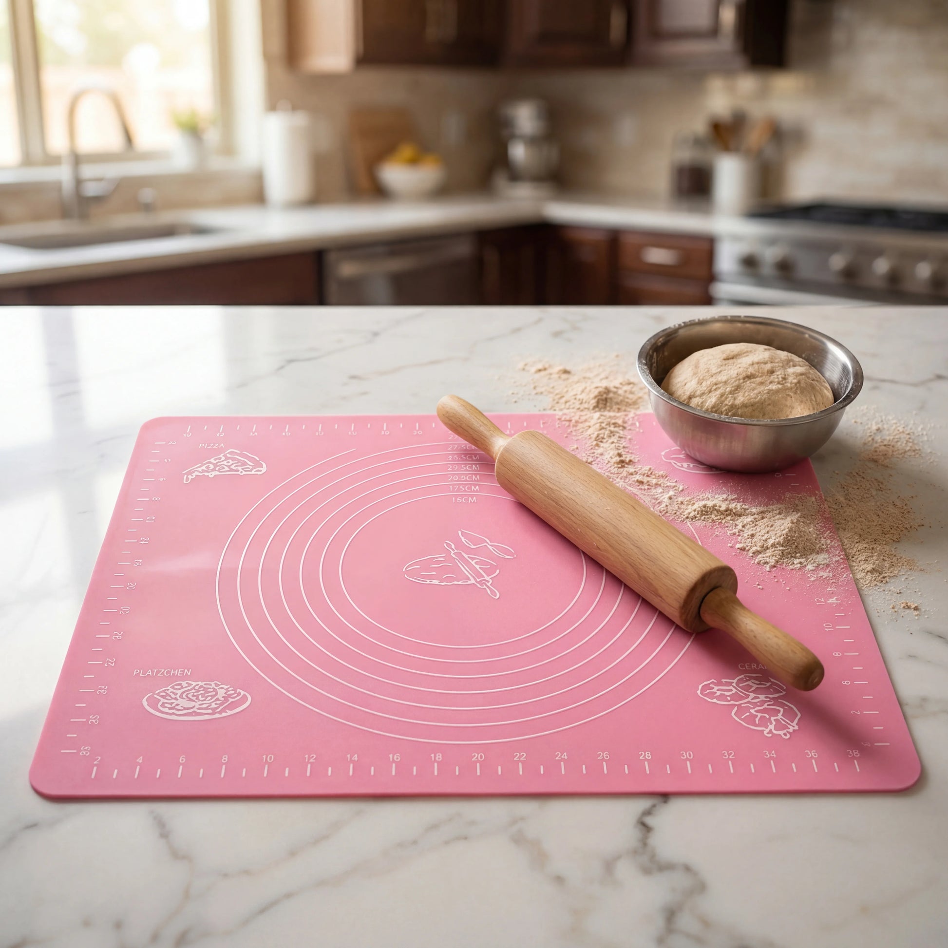 ⚙️ Features: Measurement Guides • Non-Stick Surface • Heat-Resistant